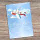 Flugzeug danke Ihnen Karte mit einem blauen Himmelshintergrund, ein rotes, weißes und blaues Flugzeug, Wolken, Sterne. Der Text lässt sich leicht bearbeiten, Schriftart-Stile und Hintergrundfarbe können auch geändert werden, indem Sie nach der Personalisierung auf den entsprechenden Link klicken.