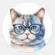 Sweet Watercolor Gray Cat Runder Aufkleber