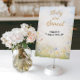 This soft wildflower design was inspired by a sunny spring meadow filled with delicate blooms and gentle pastel skies. The airy watercolor florals and elegant gold script create a warm, inviting look—perfect for a sweets table that feels as charming and joyful as the celebration itself.