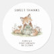 Add a charming woodland touch to your baby shower favors with this sweet fox, deer, and owl sticker. Perfect for sealing treat bags, decorating gifts, or adding a special touch to party favors. The soft neutral colors and gentle forest animals make this sticker ideal for woodland, rustic, or gender-neutral baby shower themes.