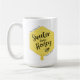 Was ist süßer als Honig? Gottes Worte! Dieses gelbe und schwarze Design wurde von Psalm 119:103 inspiriert. Honigwabenkrauben und Honigbienen sind unter dem Text "Deine Worte sind süßer als Honig" eingeklemmt. Tropfen aus dem sechseckigen Wabenhintergrund und eine Honigbiene steht dort. Eine andere Honigbiene steht auf der gegenüberliegenden Seite der Tasse und das ganze Vers in der King James Version: "Wie süß sind deine Worte nach meinem Geschmack! Ja, süßer als Honig zu meinem Mund!"
