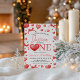 A sweetheart-themed first birthday invitation featuring red watercolor hearts, bows, and elegant typography. Designed to celebrate a little one turning one, this invitation is perfect for sweet, heart-themed, or girly first birthday parties. Coordinates beautifully with matching party décor.