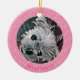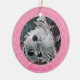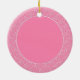 Süßes Pink-Puppy-Round KERAMIK ORNAMENT, Template-A Rundmittelmalzkunst auf pinkfarbenem und weißem blumengeschmücktem Hintergrund aus der Floral Spray Collection.