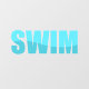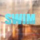 Typografie von Swim mit blauen Wellen.