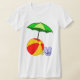 Vergnügen Sie sich am Strand oder am Pool mit der Kunst eines roten Beachballs, grünem Sonnenschirm, Sandalen und Sonnenöl.