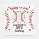 Step up to the plate and celebrate in style with this classic baseball-themed birthday invitation! Featuring bold “SWING ON OVER” text, red pinstripes inspired by a baseball jersey, crossed bats, and a baseball, this design is perfect for your little slugger’s big day. Great for boys of all ages who love the game! Personalize with your party details and get ready for a home run celebration.