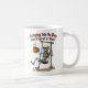Beginnen Sie Ihren Morgen mit einem Schwung! Diese lustige Kaffeetasse-Tasse zeigt ein Skelett, das fröhlich mit einer Tasse Kaffee schwingt, gepaart mit der Phrase "In den Tag schwingen, einen Cup um die Uhr".