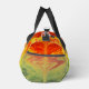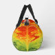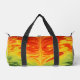 This vibrant Gear bag features a swirling abstract pattern in fiery shades of red, orange, yellow, and hints of green, creating a dynamic, flowing design. It's a distinctive Kit bag and a stylish Weekender for your travels.