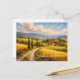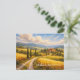 A vibrant post-impressionist landscape features a swirling sky in shades of deep blues and purples, with hints of stars or planets. An orange and yellow horizon gently undulates above a serene earth-toned field. The bold, dynamic brushstrokes evoke a Van Gogh-esque style, capturing movement and emotion in nature. Perfect for lovers of expressive art and unique postcards.