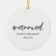 Moderne Weihnachtsschmuck mit zeitgenössischem typografischem Design mit "verheiratet" in eleganter Schriftzeichen, Ihren Namen und Ihren Hochzeitstag in einem einfachen und minimalen Layout. Auf der Rückseite ist dein LieblingsFoto. Das Farbdesign ist schwarz und weiß und kann im Designbearbeitungstool geändert werden. Dieses minimalistische Dekor ist ideal für ein frisch vermähltes Ehepaar, das zum ersten Mal verheiratet Weihnachten feiert.