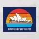 Personalisierte australische Urlaubskarte mit dem Opernhaus Sydney vor einem australischen Sonnenuntergang über coolem blauem Wasser. Niedliches FamilienausflugsSouvenir.
