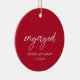 Moderne Weihnachtsschmuck mit zeitgenössischem typografischem Design mit "verlobt" in eleganter Schriftzypografie, mit Ihren Namen und Verlobungen Datum in einem einfachen und minimalen Layout. Auf der Rückseite ist dein LieblingsFoto. Das Farbdesign ist rot und kann mit dem Designbearbeitungstool geändert werden. Dieses minimalistische Dekor ist ideal für ein Paar für ihr erstes Weihnachtsfest verlobt.