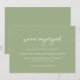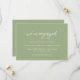 Moderne Hochzeiten sichern die Dattelkarte mit zeitgenössischem typografischem Design mit "wir sind verlobt" in eleganter Schriftzypografie. Im Folgenden finden Sie Ihre Veranstaltungsdetails in einem einfachen und minimalen Layout. Das Farbdesign ist schlinggrün und kann durch das Editing-Tool geändert werden.