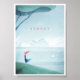 Vintages Reiseplakat von Sydney. Illustration eines Mädchens in einem Park vor der Sydeny-Oper. Text lautet: Visit Sydney. Original handgezeichnete und digital gerenderte Illustration von Henry Rivers für Travel Poster Co.