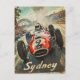 Ein beeindruckendes Vintages Design mit Sydney, Australien, mit seinen ikonischen Sehenswürdigkeiten, neben einem klassischen Rennwagen. Das Kunstwerk verbindet die modernen architektonischen Wunder des Sydney Opernhauses und der Harbour Bridge wunderbar mit der eleganten Eleganz eines Retro-Rennwagens und schafft so eine Szene, die sowohl Eleganz als auch Nostalgie ausstrahlt. Dieses Design spiegelt den lebendigen Geist und den zeitlosen Charme Sydneys wider.