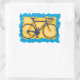 Dieses Design ist ein Fahrradsymbol. Das Fahrrad ist auf einem gelben und blauen Hintergrund. Dieses Symbol für das Fahrrad sieht auf diesen Aufklebern großartig aus