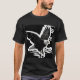 Eine stilisierte Darstellung eines Glatzenadlers im Mittelflug, dessen Flügel sich dramatisch verbreiten und die Talone in einer posierten, kraftvollen Geste ausgeweitet werden. Der weiße Kopf und der Schwanz des Adlers kontrastieren stark mit seinem dunklen Körper und seinen Flügeln und verstärken sein ikonisches Aussehen. Der schwarze Hintergrund mit weißem und grauem Akzent verleiht dem Adler ein Gefühl von Bewegung und Intensität, sodass er so aussieht, als ob er durch die Luft schneidet. Dieses Bild erinnert an Themen wie Stärke, Wachsamkeit und Freiheit - Eigenschaften, die oft mit dem Glatzenadler und seiner Symbolik in der amerikanischen Kultur in Verbindung gebracht werden.