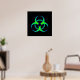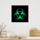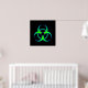 Schwarzes Poster mit grün-blauer Biogefährdung.
