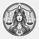 Eine schwarz-weiße Libra Vektorkunst mit einer schönen Frau und Größe.