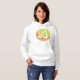 Ein Notensymbol auf grünem und orangefarbenem Hintergrund. Dieses Design sieht wirklich effektiv aus bei diesem weiblichen Hoodie