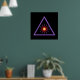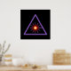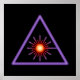 Schwarzes Poster mit orangefarbenem und lila Laserwarnsymbol.