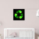 Grün drei Pfeil recycelnd Symbol auf einem schwarzen Hintergrund.