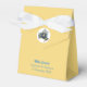 Feiern Sie auf sizilianische Art mit dieser gelben Favor-Box in Form eines Zeltes, die mit einem weißen Satinband gebunden ist. Die vordere Klappe zeigt eine porzellaninspirierte Trinacria, akzentuiert mit weichen gelben Zitronen in einem weißen Kreis. „Mille Grazie“ erscheint in eleganter blauer Schreibschrift (anpassbar), mit Platz darunter für Namen, Datum oder beliebige Texte. Die Rückseite zeigt eine größere Trinacria in einem weißen Kreis. Der Text kann entfernt werden, wenn gewünscht – perfekt für Hochzeiten, Babypartys oder besondere Anlässe.