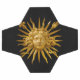 Symbol von Louis XIV der Sonnenkönig (Roi Soleil) am goldenen Tor des Schlosses von Versailles mit schwarzem Hintergrund