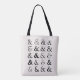 Ein Design von zwanzig verschiedenen Ampersandsymbolen in schwarzer Schrift auf beigem Hintergrund.