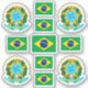Vier individuell zugeschnittene Vinyl-Aufkleber mit brasilianischem Wappen und sieben Aufkleber mit brasilianischer Flagge in der Mitte