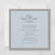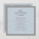 Eine elegante und hoch entwickelte Einladung in einem weichen Blau mit einer grauen Grenze. Die Karte kennzeichnet einen dekorativen Titel mit einem Kreisfenster für ein Monogramm, ein Kreuz, ein Datum, ein etc. Sie wird durch abstraktes Laub angegrenzt. (FP)