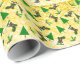 Ein lustiges Design für die Ferien mit symbolischer Weihnachtsgeschenkverpackung. Bäume, Strümpfe und heilig auf einem winterlich gelben Hintergrund.