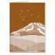 Eine Abbildung der Syme Hütte auf dem Fathoms Peak, mit dem Berg Taranaki im Hintergrund. Dieses Design ist in einem braunen Monochrom gezeichnet und hat die Matariki Sterne darüber im Himmel. Ein Design für alle, die Lieben Wandern und Trampen in Neuseeland.