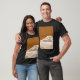 Eine Abbildung der Syme Hütte auf dem Fathoms Peak, mit dem Berg Taranaki im Hintergrund. Dieses Design ist in einem braunen Monochrom gezeichnet und hat die Matariki Sterne darüber im Himmel. Ein Design für alle, die Lieben Wandern und Trampen in Neuseeland.
