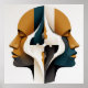 Symmetrical Abstract Portrait in Ochre and Slate Poster