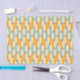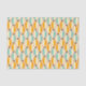 Symmetrical retro pattern with interlocking teal, yellow, and orange shapes on a beige background. Black star-like accents add contrast, creating a vintage feel.