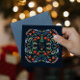 Treten Sie ein in den Urlaubssinn mit diesem wunderschön gestalteten Kunstwerk. Symmetrie trifft auf festlichen Charme in diesem Design, indem sie komplexe Blumenmuster, glänzende Sterne und die aufregende Nachricht "Happy Holidays" zeigt. Dieses faszinierende Kunstwerk eignet sich ideal für saisonale Dekoration oder als besonderes Geschenk und verspricht Wärme und Freude in jedem Ambiente zu strahlen.