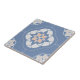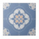 Symmetrisches Orange-Blume getechtes Muster auf bl Fliese