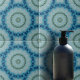 Diese Keramik-Kachel zeichnet sich durch ein komplexes und symmetrisches kaleidoskopisches Muster aus, das eine harmonische Mischung aus sanfter Blues und Grüntönen ausstrahlt. Das Design erinnert an blühende Blume und das Rippen des Wassers und schafft so eine Aura ruhiger Schönheit. Das Muster der Kachel ist überlagert, wobei jede Schicht unterschiedliche Formen und Designs zeigt, die zur Gesamtkomplexität beitragen. Die äußeren Schichten sind im Schatten dunkler als die inneren Schichten, die leichter sind. Dieser Kontrast schafft ein Gefühl der Tiefe im Design. Diese Keramik-Kachel dient nicht nur als Funktionselement, sondern auch als künstlerischer Ausdruck, der jedem Raum, den sie schmückt, eine Touch der Eleganz und Ruhe verleiht.