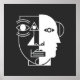 Explore the complex blend of form and perception with this sophisticated abstract design from GeoGlobal Art! Titled "Symmetry Interrupted: The Face Between Angles," this illustration features a stylized portrait split between frontal and profile views, rendered in stark white line art on a dark background. The piece is highly influenced by Cubism and early Modern Art, using precise geometric lines to represent the multifaceted nature of the human face and mind.