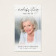 Celebrate the memory of your loved one with this custom personalized prayer card featuring one cherished photo, the title CELEBRATING THE LIFE OF, name and dates on the front and an editable prayer you can change to a heartfelt remembrance message, meaningful poem or saying accented with a simple cross on the back. With its simple yet elegant classic black and white design and modern handwritten script typography, it makes a meaningful keepsake to share at a Celebration of Life, funeral, memorial service, visitation or wake and offers comfort and a lasting photo tribute for family and friends. Its small and portable size of 3.5x2" (wallet-sized) makes it convenient for loved ones to carry it with them as a reminder of your loved one’s life and spirit. Personalization makes each card unique.