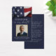 Keep the memory of a loved one close with this personalized patriotic prayer card featuring a cherished photo of them framed in faux metallic gold foil, the sentiment FOREVER IN OUR HEARTS, name and dates with an image of an American flag on the front and an editable heartfelt remembrance message on the back in navy blue. With its simple yet elegant classic design and modern script typography, it makes a meaningful keepsake to share at a funeral, memorial service or Celebration of Life and offers comfort and a lasting tribute for family and friends. Its small and portable size of 3.5x2" (wallet-sized) makes it convenient for loved ones to carry it with them as a reminder of your loved one’s life and spirit. Personalization makes each card unique.