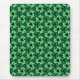 Ein lebendiges Muster grüner 5-Punkte-Sterne, die wie Blume aussehen, ist in einem nahtlosen, symmetrischen Layout angeordnet, wodurch ein visuell faszinierendes geometrisches Design entsteht. Die sich wiederholenden Elemente bilden einen Kaleidoskopeffekt, der das Auge über das Bild zeichne.