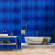 Ein faszinierendes Muster entsteht aus einer Oberfläche, die in einem tiefen und opulenten Blau-Schatten vergraben ist, wo die Wiederholung spiegelt, um ein hypnotisches visuelles Meisterwerk zu schaffen. Die Oberfläche ist mit einer Tiefe und Reichtum bemalt, die das Auge bezaubert, seine subtilen Ton- und Texturvariationen bieten ein faszinierendes Licht- und Schattenspiel. Mit zunehmender Lichtverschiebung offenbaren sich die unterschiedlichen Blautöne, die einen sich ständig verändernden, beruhigenden und belebenden Wandteppich schaffen. Diese visuelle Symphonie der Blues ist nicht nur eine Farbe, sondern eine Erfahrung, ein Kunstspiel und eine Emotion, die die Sinne einbinden. Das gleiche Design ist auch in anderen Mustergrößen erhältlich, sodass es sich ideal für die Umrüstung von Räumen, temporären Räumen, Bücherregalen und einer Reihe von Handwerksprojekten eignet.