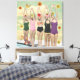 Moderne Collage Wall Art. Dieses ist Vintage Retro Synchronisierte Badeschönheiten am Schwimmbad mit Blume und Schmetterlingen. Orangenfarben, Rosa, Gelb, Rot, lila, Weich Blau und Grün. Spaß, Mod und eklektische Ephemonie. Dies ist eine flache Oberfläche mit einer glatten Leinwand. Spaß, surreale Kunst mit einer Mischung aus Collage und digitaler Kunst, mit einem Vintagen Retro-Gefühl Mitte des Jahrhunderts.