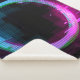 Synthwave Vaporwave Retrowave Glitch Circle mit blau und rosa Glühbirnen mit Rauch und Partikeln auf Lasergitterhintergrund.