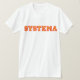 Weißer RMA T - Shirt mit Systema in Rotem und in Gelbem auf dem Kasten.