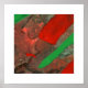 Aus einer Reihe abstrakter Bilder in Acrylfarbe genommen. Primäre Rottöne und Grüntöne scheinen vor einem texturierten Hintergrund nach oben zu schweben.