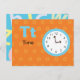 Letter T ist für die Zeit in unserem Alphabet Flash Card Set. Holen Sie sich alle 26 Buchstaben des Alphabets! Eine doppelseitige Postkarte, die sich ideal für Gedächtnisspiele und Lehre eignet, für Bildung, Schulen, Lehrer und die Schule für Kindergärten und Babys. Alle Texte können bearbeitet werden, wenn Sie sie anpassen müssen.