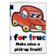Jungen, die Liebe tauscht und Autos sind Liebe, die diese niedliche T für LKW-T - Shirt ist, Taschentasche, mousepad, Aufkleber, und mehr mit einem roten Lieferwagen-LKW mit Augen und ein Lächeln und ein Text, der "liest, T ist für LKW! Stellen Sie meine einen Lieferwagen-LKW!" her.